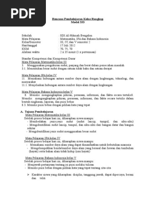 Doc Rencana Pelaksanaan Pembelajaran Kelas Rangkap Rpp Pkr