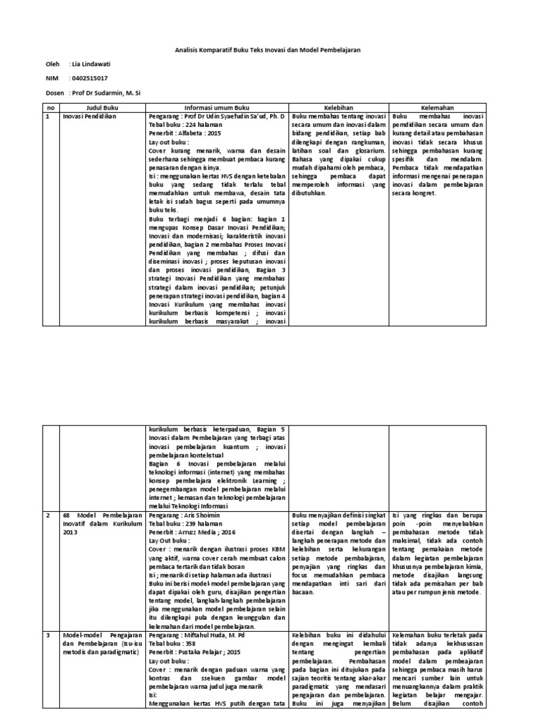 Analisis Komparatif Buku Teks Inovasi Dan Model Pembelajaran