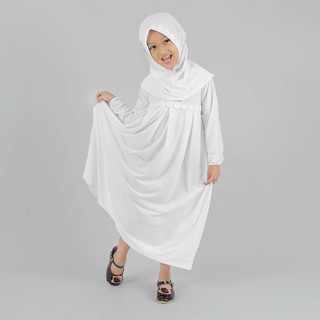 Set Baju Muslim Putih Renda Anak Perempuan Umroh Model Pita Di Pinggang Usia 1 12 Tahun