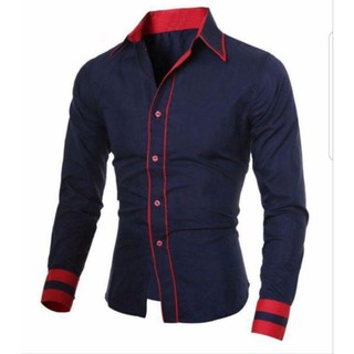Cek Harga Baju Kemeja Pria Lengan Panjang Krah Warna Polos