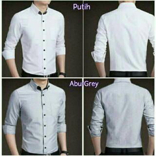 Baju Kemeja Pria Putih Polos Grey Formal Atasan Pria Lengan Panjang Terbaru Model Slimfit Modern