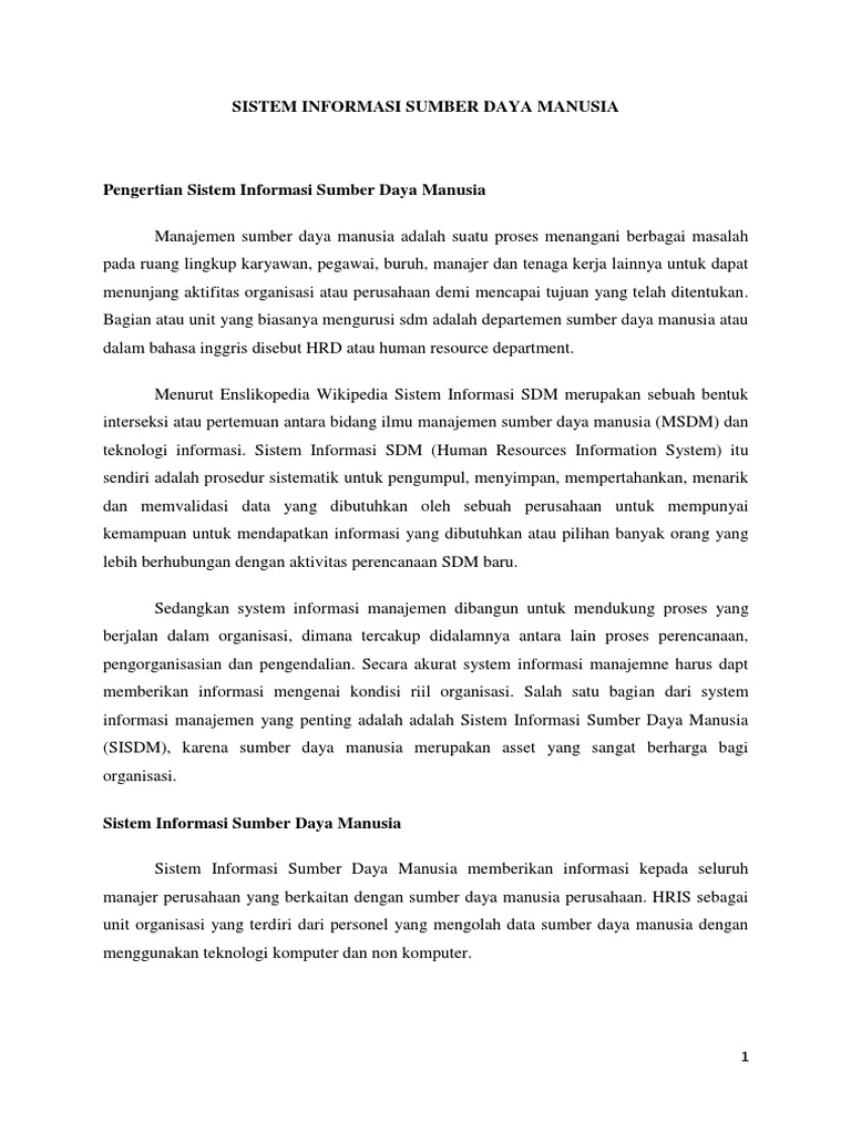 Makalah Sistem Informasi Sumber Daya Manusia Doc Document