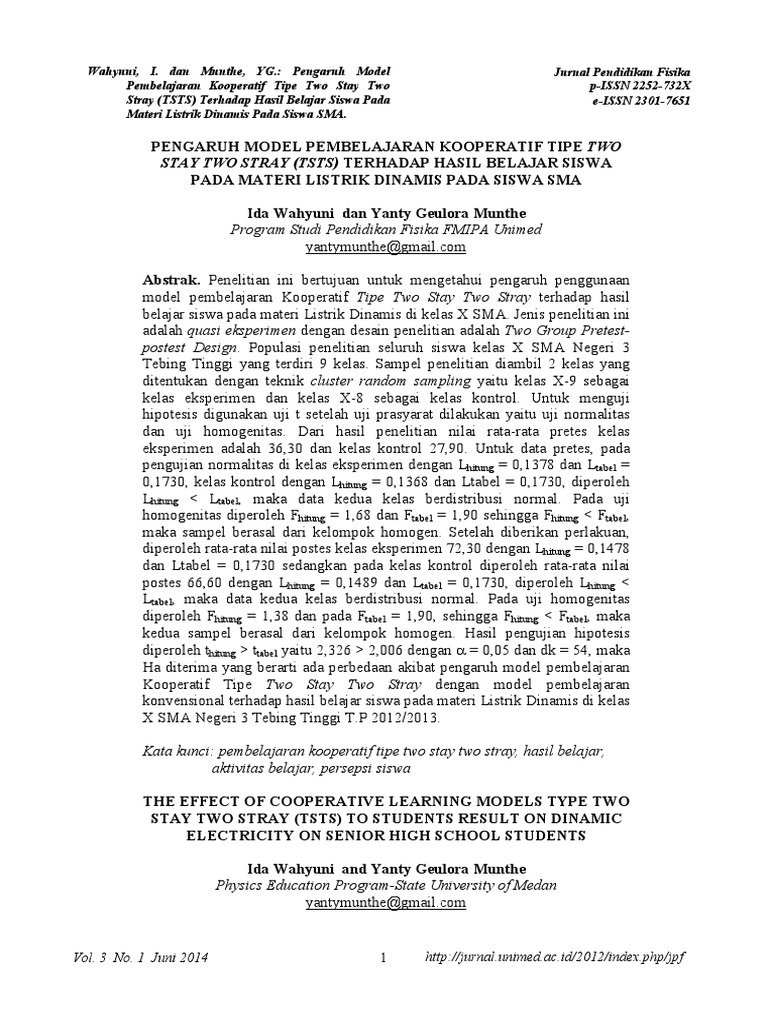 Ptk Fisika Smp Pengaruh Model Pembelajaran Kooperatif Tipe