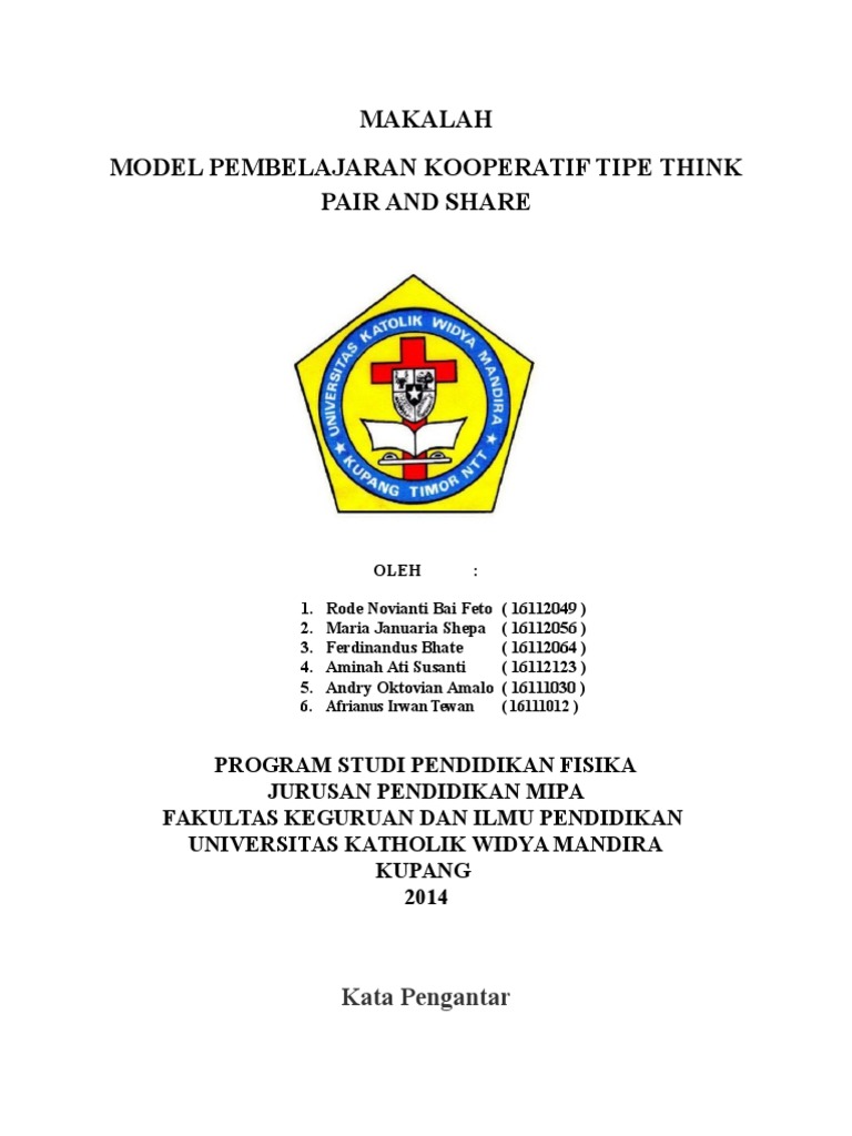 Penerapan Model Pembelajaran Kooperatif Tipe Think Pair