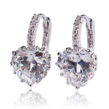 Bluelans Woman 18k White Gold Plated Shining Rhinestone Heart Everlasting Hoop Earrings