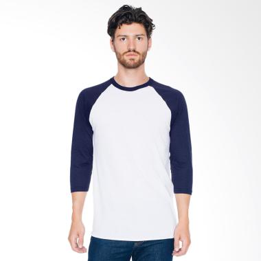 Dections Kaos Distro Polos Oblong Lengan Raglan 34 T Shirt Pria Putih Navy