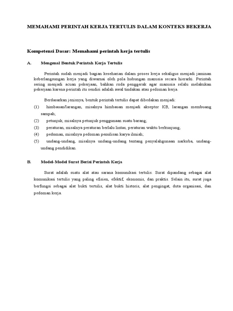Berikut detail informasi tentang Model Model Surat Berisi Perintah Kerja.