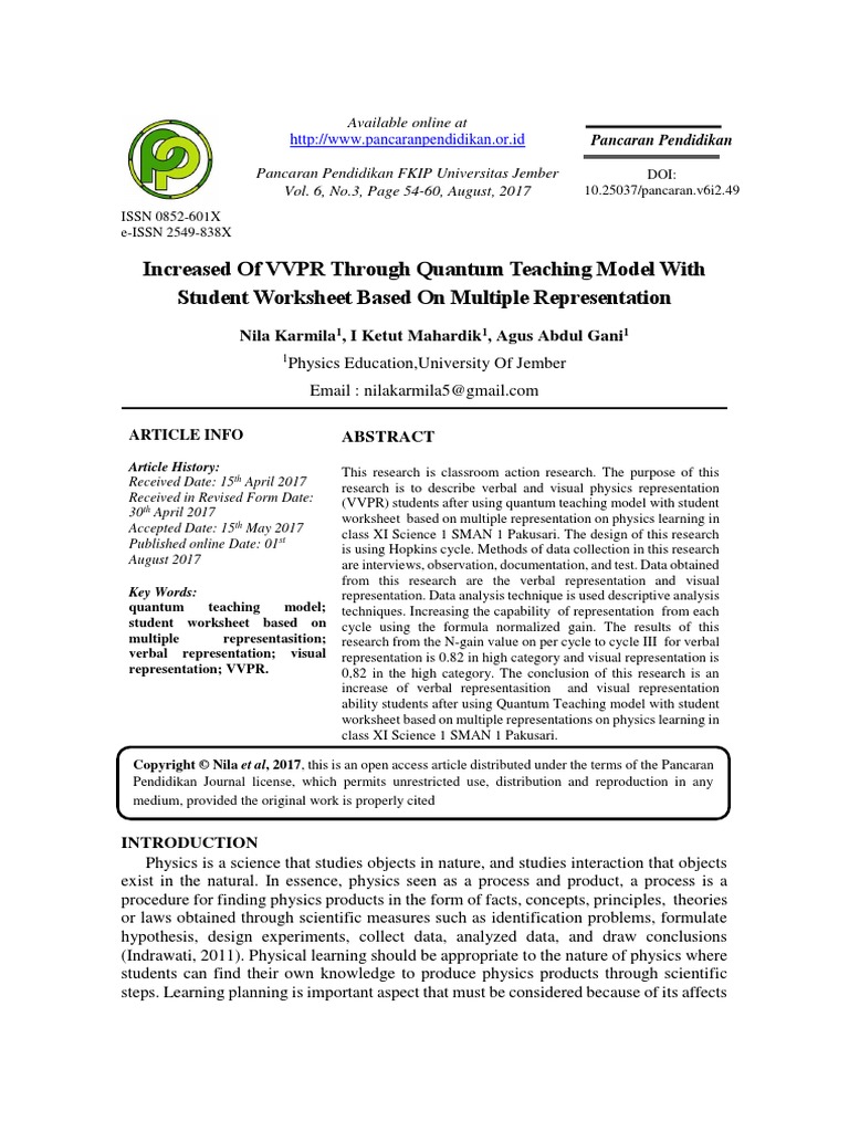 Pdf Pengaruh Model Pembelajaran Quantum Teaching Tipe