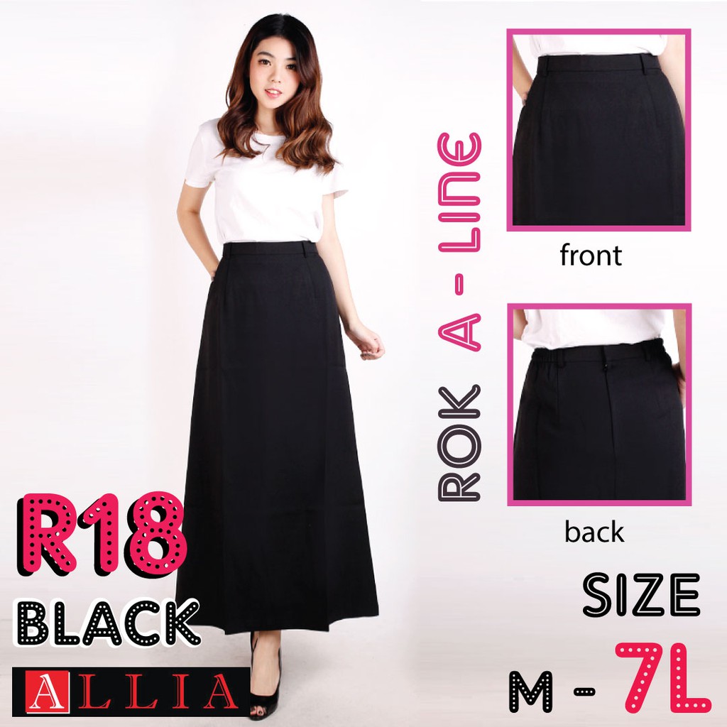 Rok A Line Wanita Allia R18 Black M 7l Rok Wanita Panjang Jumbo Rok Panjang Wanita