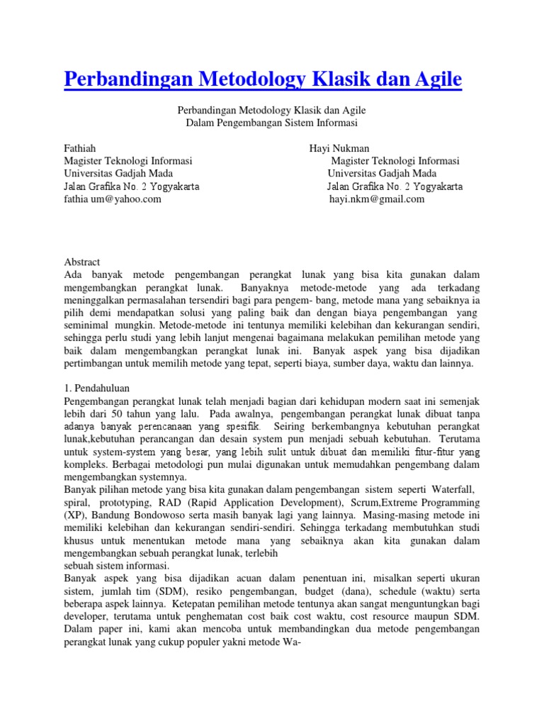 Perbandingan Metodology Klasik Dan Agile