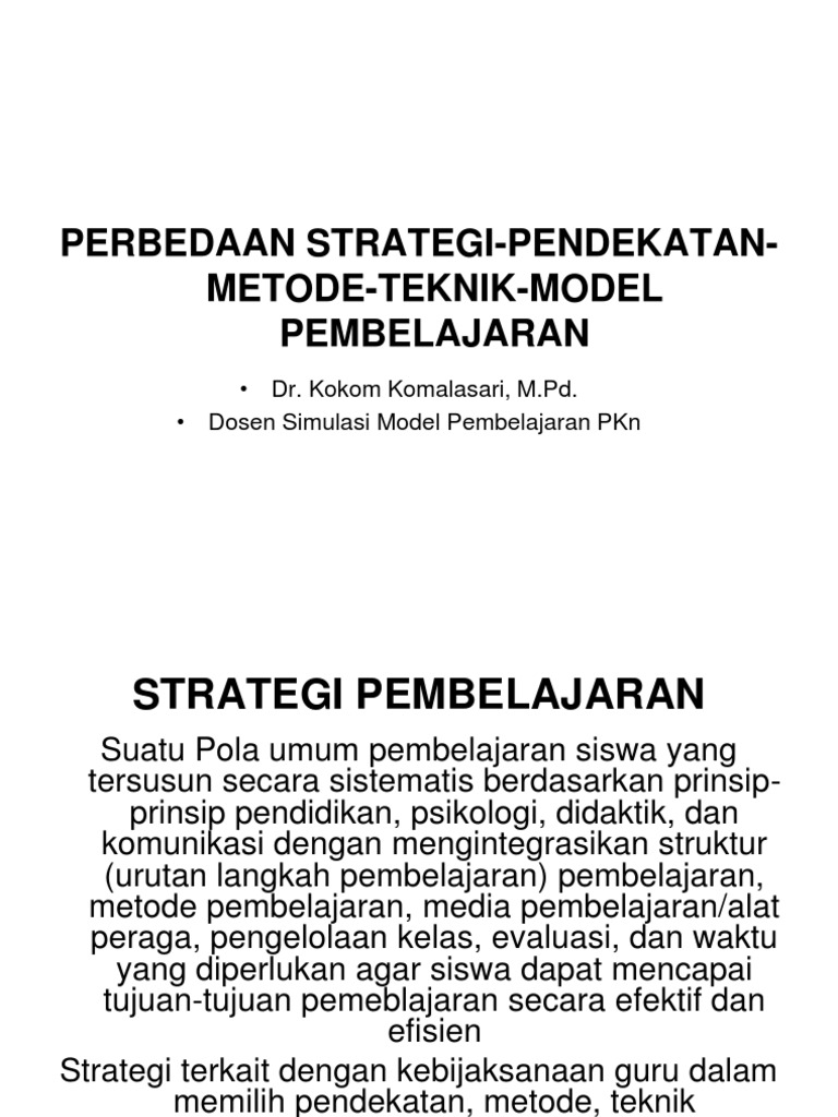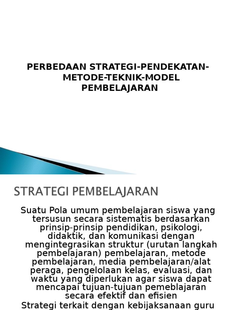 Perbedaan Pendekatan Strategi Metode Teknik Model