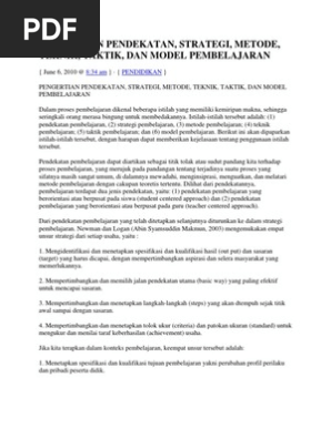 Pengertian Pendekatan Strategi Metode Teknik Taktik Dan