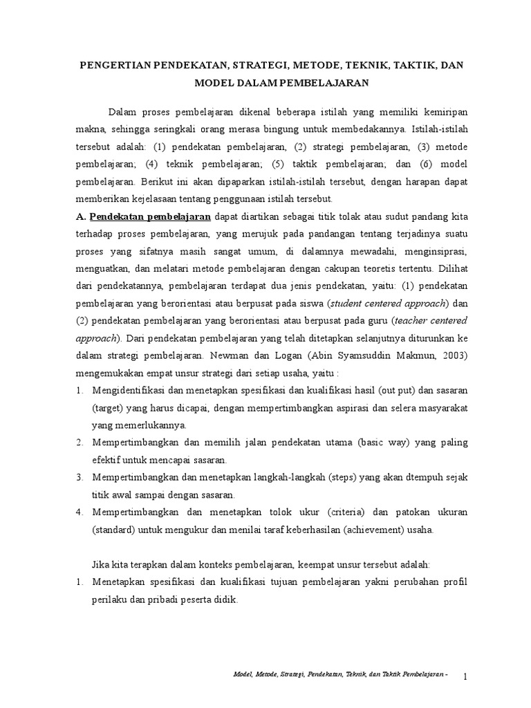 Pengertian Model Metode Strategi Pendekatan Dan Teknik