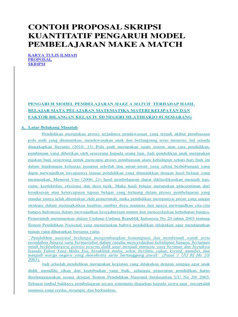 Inilah rekomendasi tentang Skripsi Model Pembelajaran Make A Match.