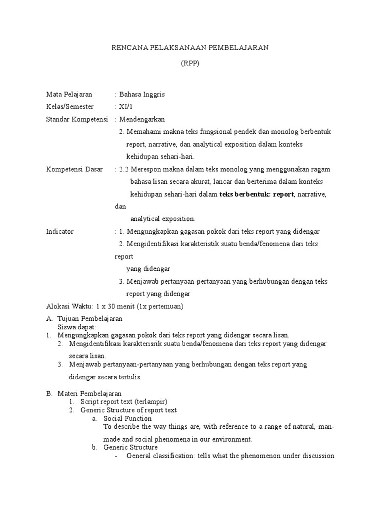 145015746 Rpp Listening Untuk Kelas Xi 1 Made By Dewi Habibah