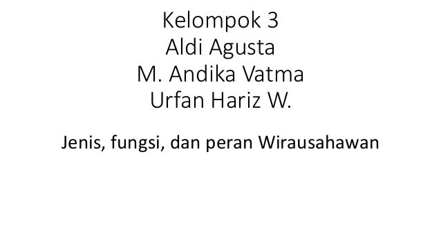 Jenisfungsi Dan Peran Wirausahawan