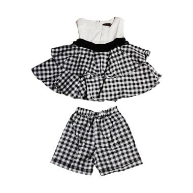 Verina Baby Kotak Kotak Setelan Pakaian Anak Perempuan Hitam Putih
