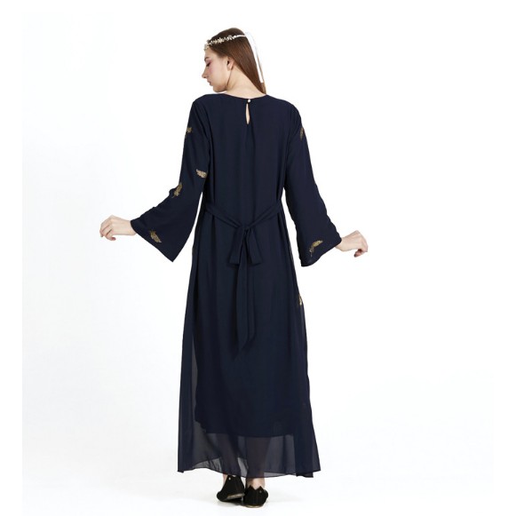 Fashion Wanita Long Dress Muslimgamis Bahan Sifon Motif Bulu