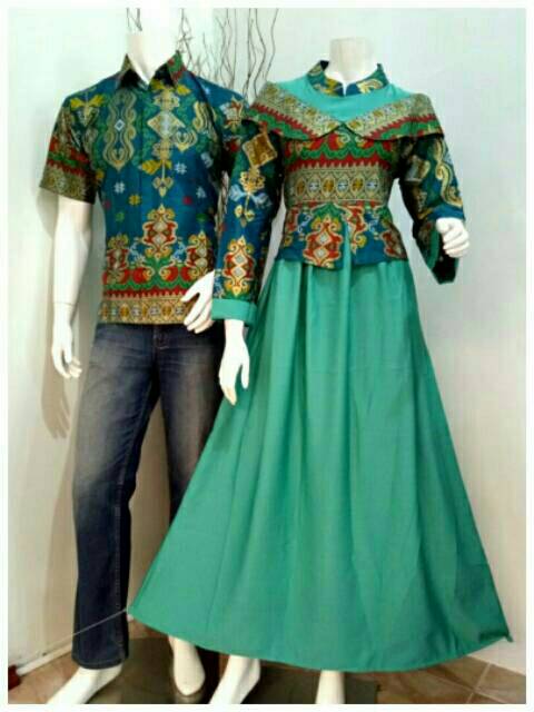 Model Gamis Batik Kombinasi Polos Sarimbit