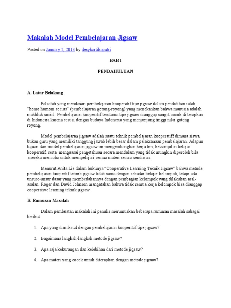 Makalah Model Pembelajaran Jigsaw January 2 2013