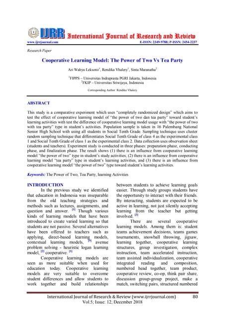 Cooperative Learning Model The Power Of Two Vs Tea Party