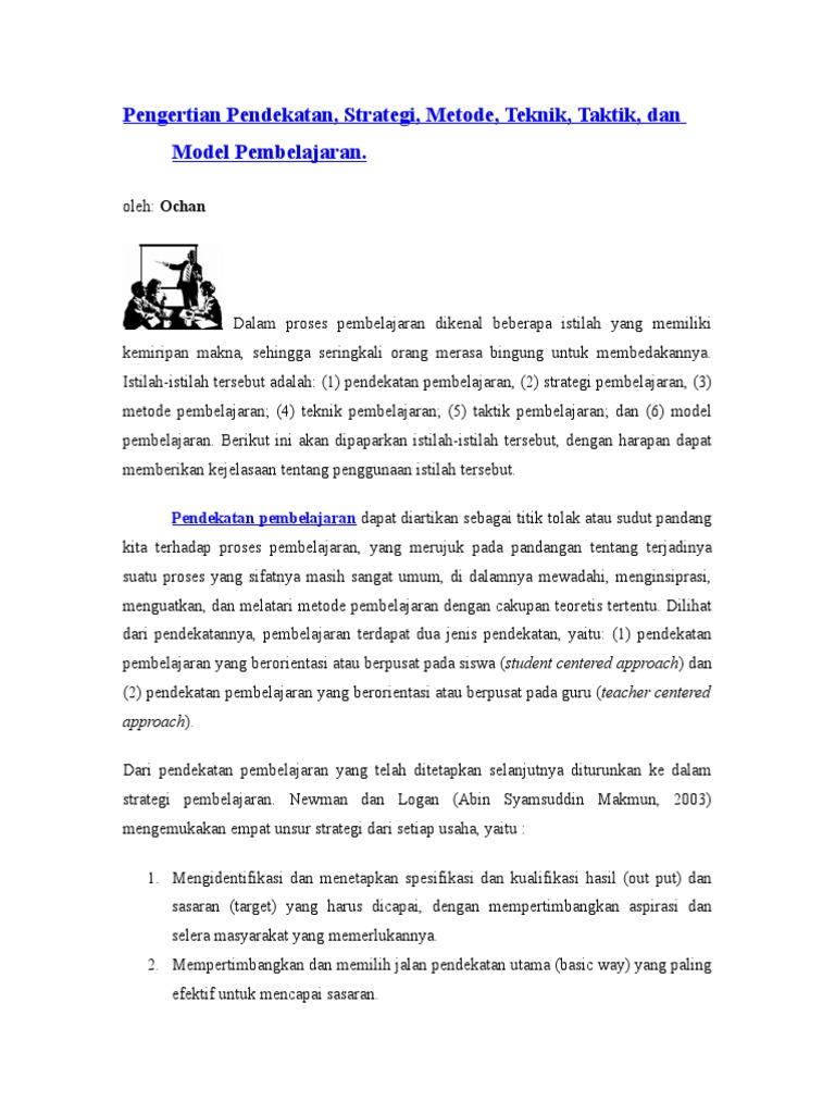 Pengertian Pendekatanstrategi Metode Teknik Taktik Model