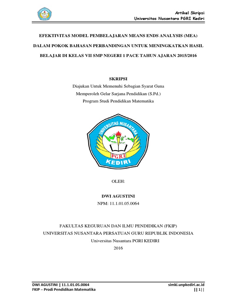Pengaruh Penerapan Model Pembelajaran Means Ends Analysis