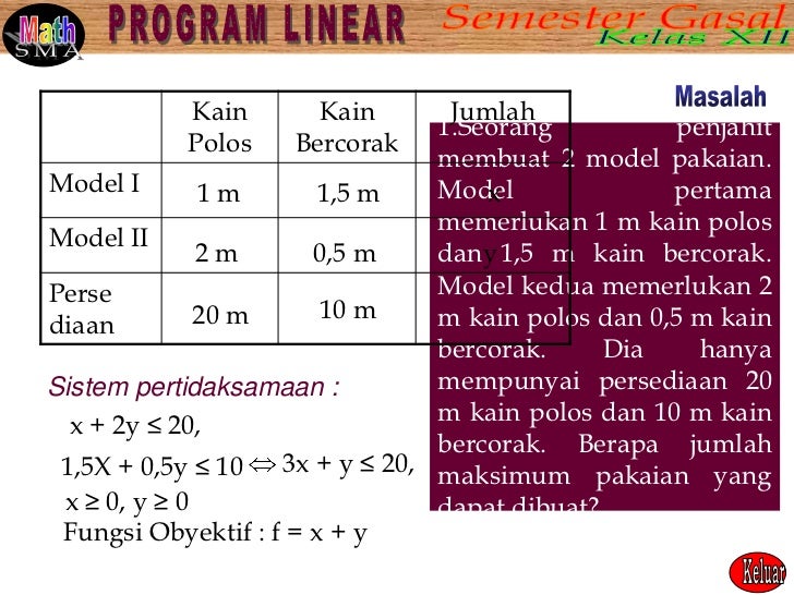 Un Sma 2016 Matematika Pembahasan No 08 Proglam Linear