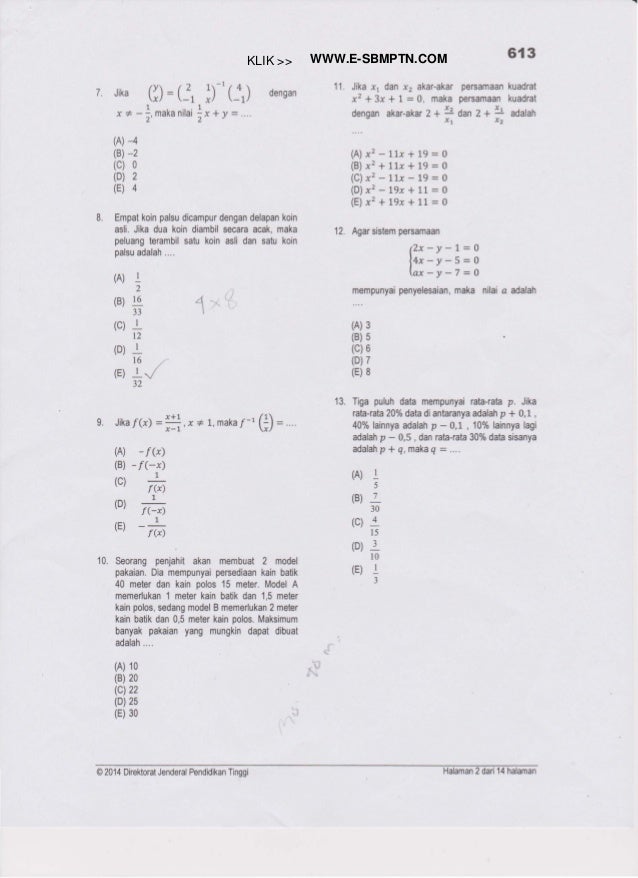 Soal Sbmptn 2014 Kunci Jawaban Soalujiannet