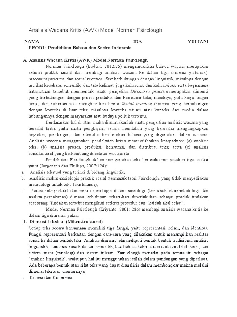 Data lengkap tentang Analisis Wacana Kritis Model Norman Fairclough.