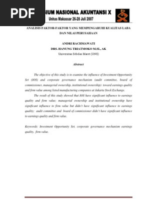 Analisis Faktor Faktor Yang Mempengaruhi Kualitas Laba Dan