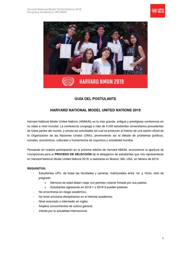 Guia Del Postulante Harvard Nmun 2019 Upc