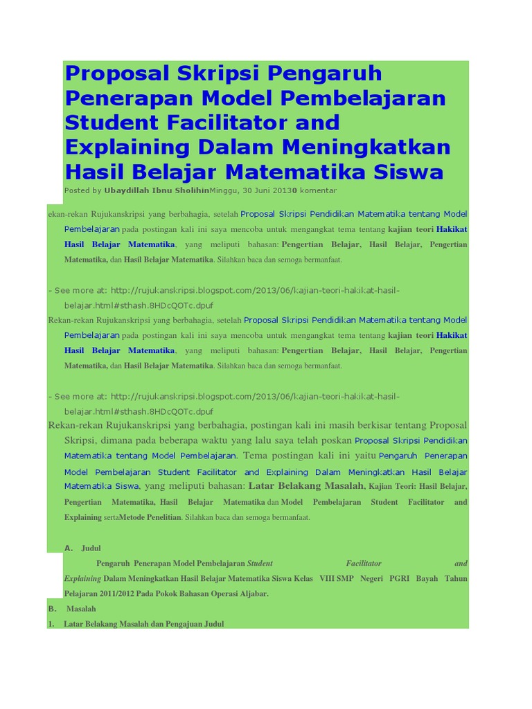 Proposal Skripsi Pengaruh Penerapan Model Pembelajaran