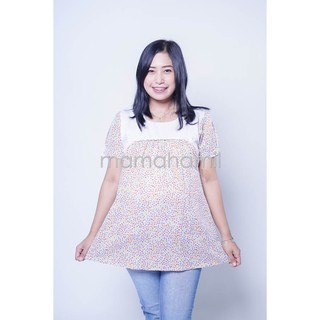 Baju Hamil Atasan Hamil Menyusui Lengan Pendek Motif Bunga Kombinasi Brokat Putih Sd 306