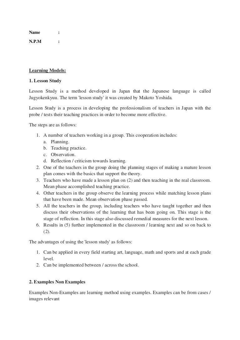 Model Model Dalam Belajar Dan Pembelajaran Makalah Belajar