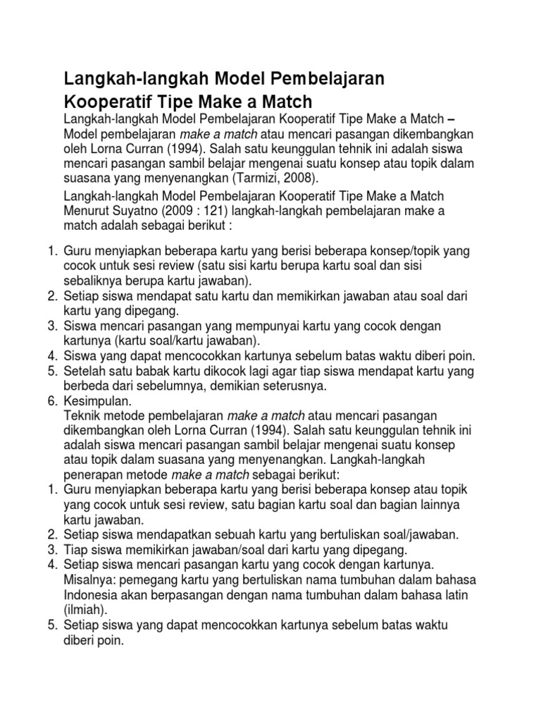 Berikut yang anda butuhkan terkait Model Pembelajaran Make A Match Adalah.