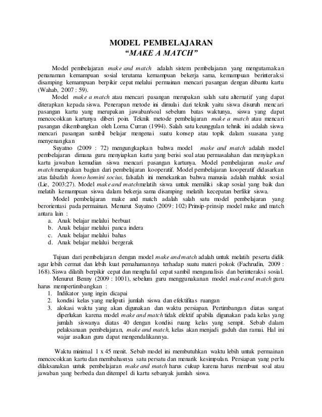 Model Pembelajaran Tipe Make A Match Kajianpustakacom