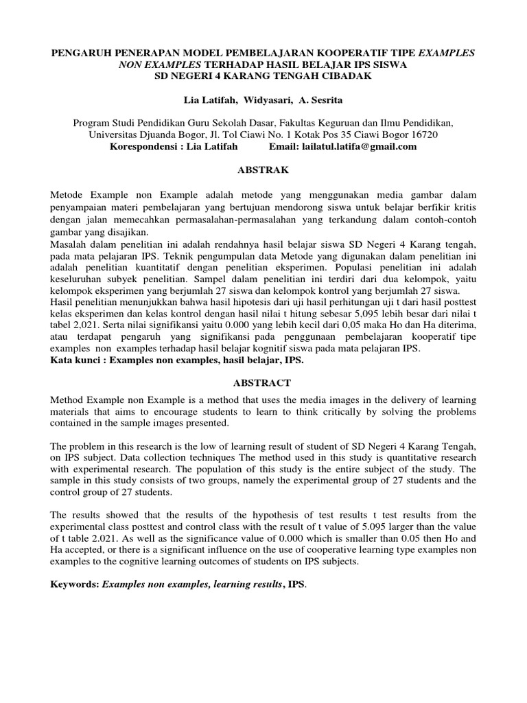 Pdf Pengaruh Metode Pembelajaran Example Non Example