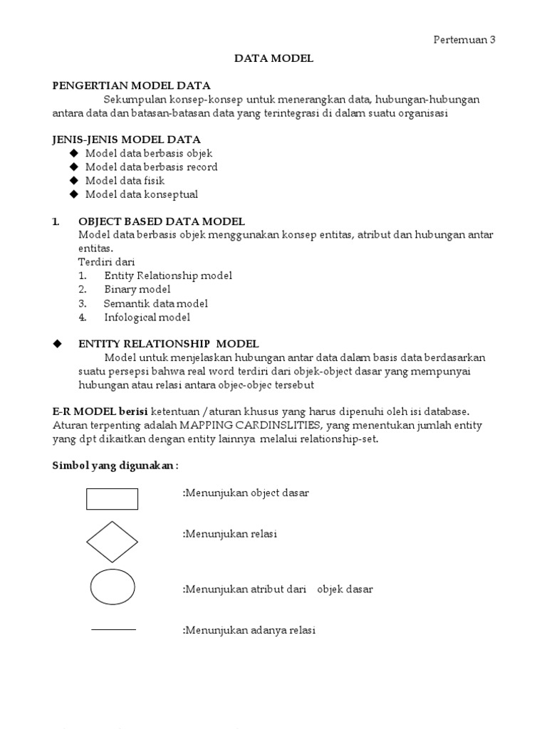 Antara data dan batasan batasan data yang terintegrasi di dalam suatu organisasi jenis jenis model data model data berbasis objek model data berbasis record model data fisik model data konseptual object based data model model data berbasis objek menggunakan konsep entitas atribut dan hubungan antar entitas. Model data berbasis objek merupakan himpunan data dan relasi yang menjelaskan hubungan logik antar data dalam suatu basis data berdasarkan objek datanya.