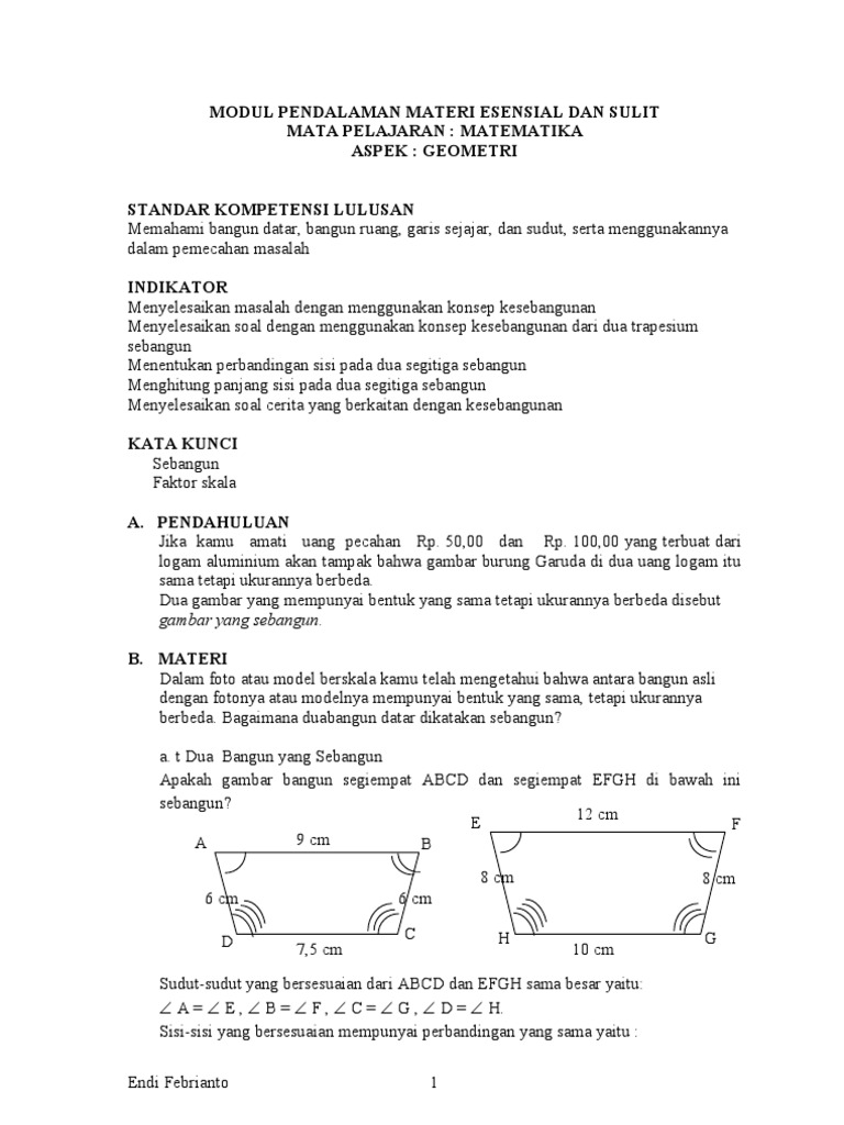 Pendalaman Materi Kesebangunan Amp Kongruensi