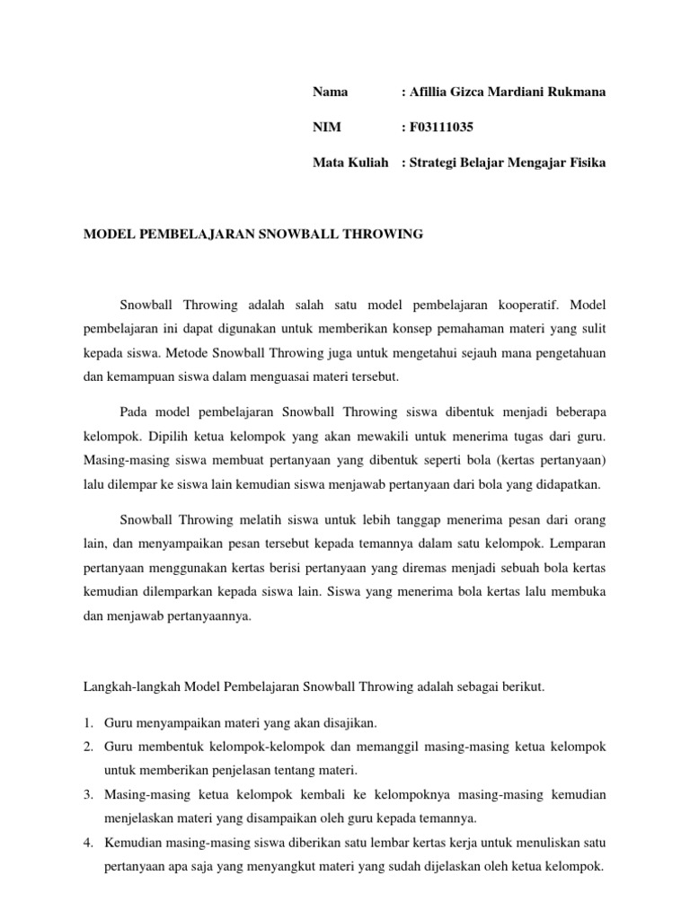 Metode Pembelajaran Snowball Throwing Portal Ilmucom