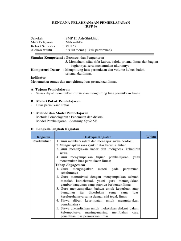 2016 Lks Dan Rpp Model 5e Pada Materi Teorema Pythagoras