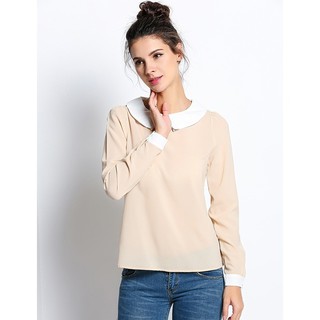 C1sbaju Atasan Blus Wanita Model Seksi Lengan Panjang Kerah Boneka Bahan Sifon Kasual Terbaru
