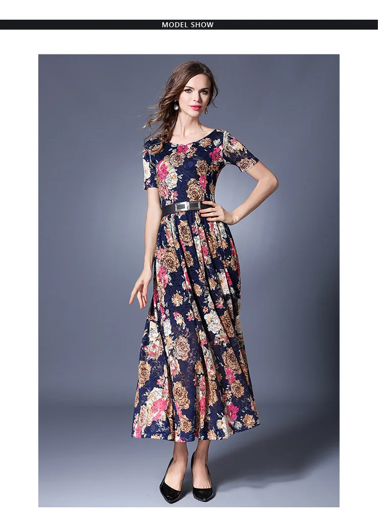 Bunga Floral Lace Long Dress Dicetak Lengan Pendek Musim