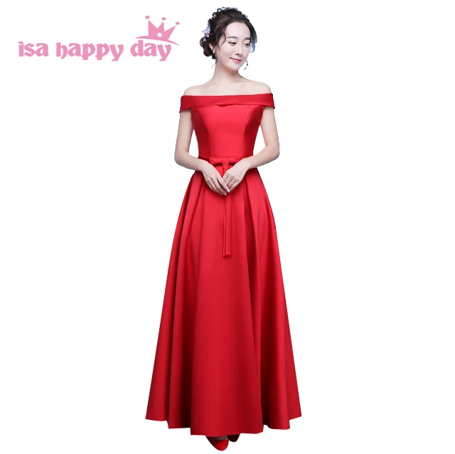 Us 3325 5 Offelegan Seksi Pengantin Merah Panjang Satin Wanita Gaun Pesta Ukuran 8 Untuk Suster Mempelai Wanita Makan Malam Gaun Elegan Sederhana