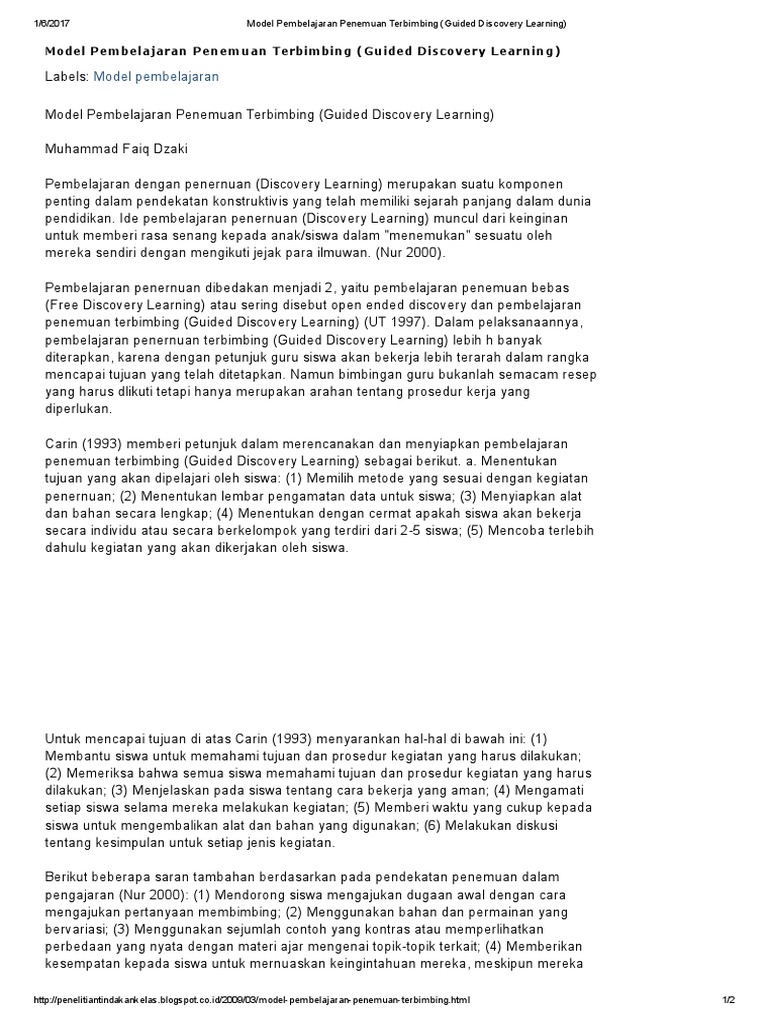 Admin mengumpulkan informasi Model Pembelajaran Penemuan Terbimbing Guided Discovery Learning.