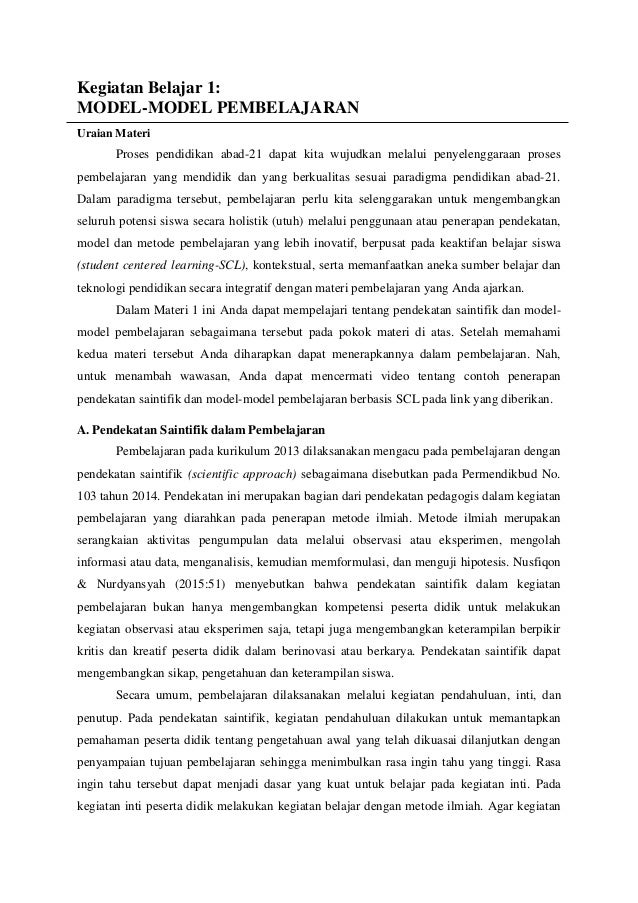 Pdf Kegiatan Belajar 1 Model Model Pembelajaran Aby