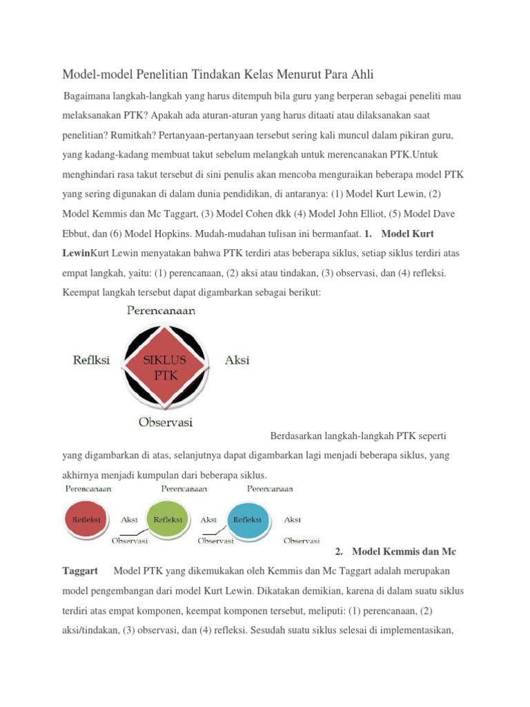 Model Dan Jenis Jenis Penelitian Tindakan Kelas Model Ptk