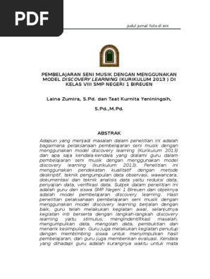 Pembelajaran Seni Musik Dengan Menggunakan Model Discovery