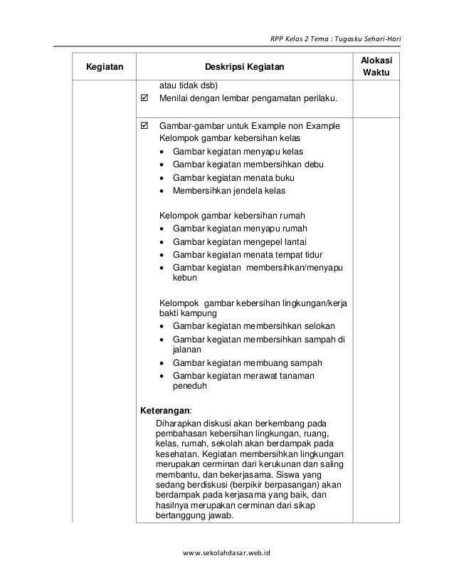 3 Rpp Sd Kelas 2 Semester 1 Tugasku Sehari Hari Blonya Nova